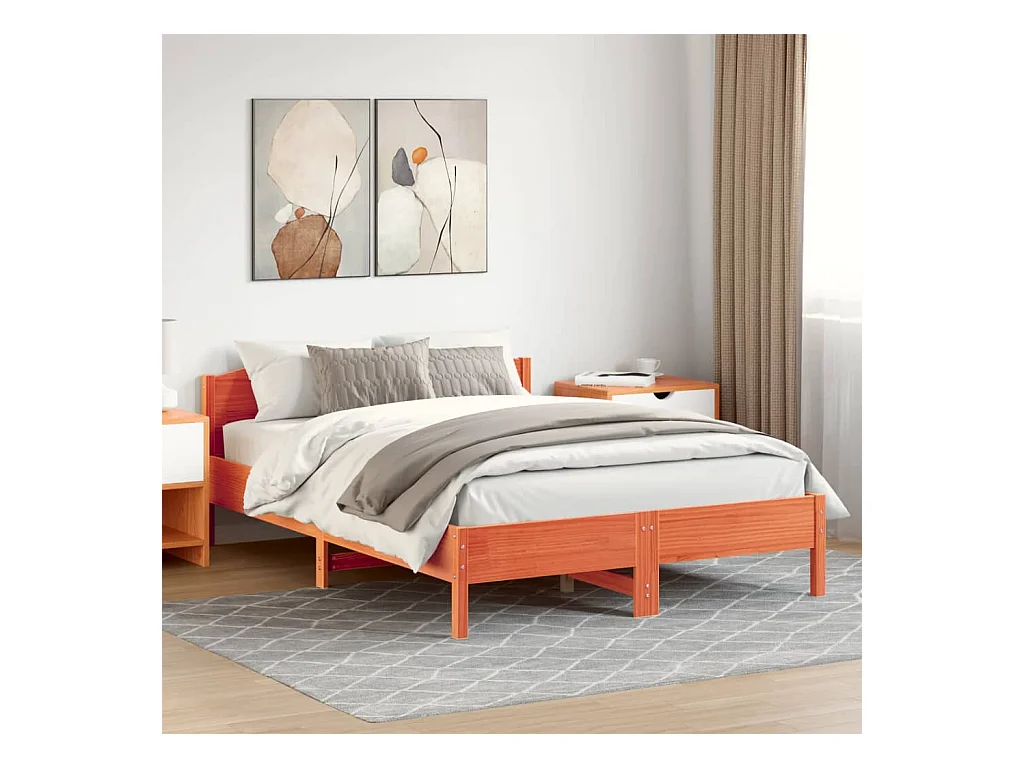 Lit double et tête de lit cire marron 140x200 cm bois de pin FR33655