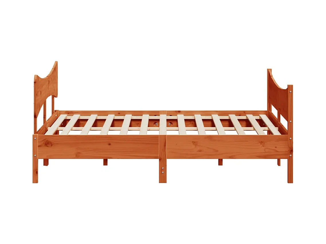 Lit double et tête de lit cire marron 180x200 cm bois de pin FR70917
