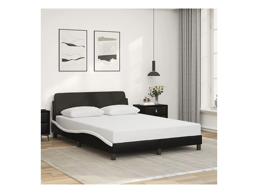 Lit double et tête de lit noir et blanc 120x200 cm similicuir FR13739