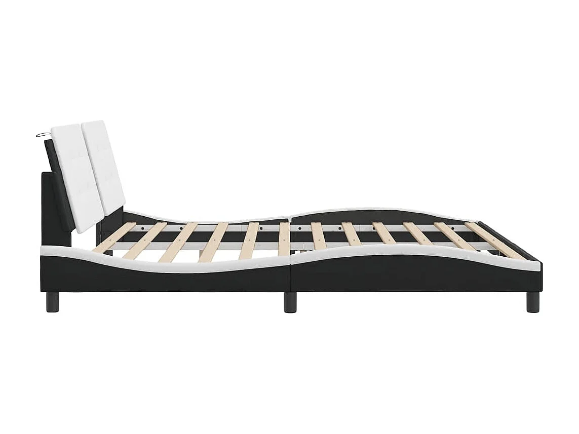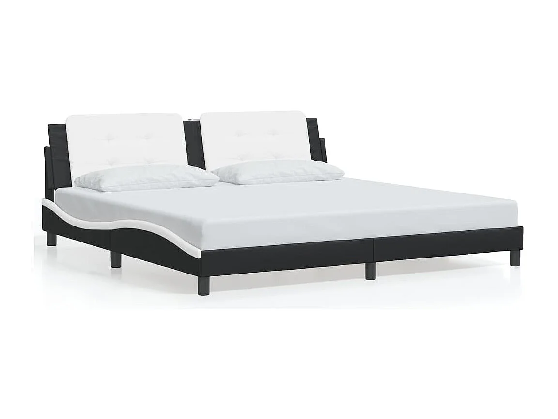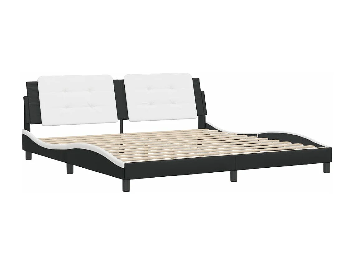 Lit double et tête de lit noir et blanc 200x200 cm similicuir FR34411