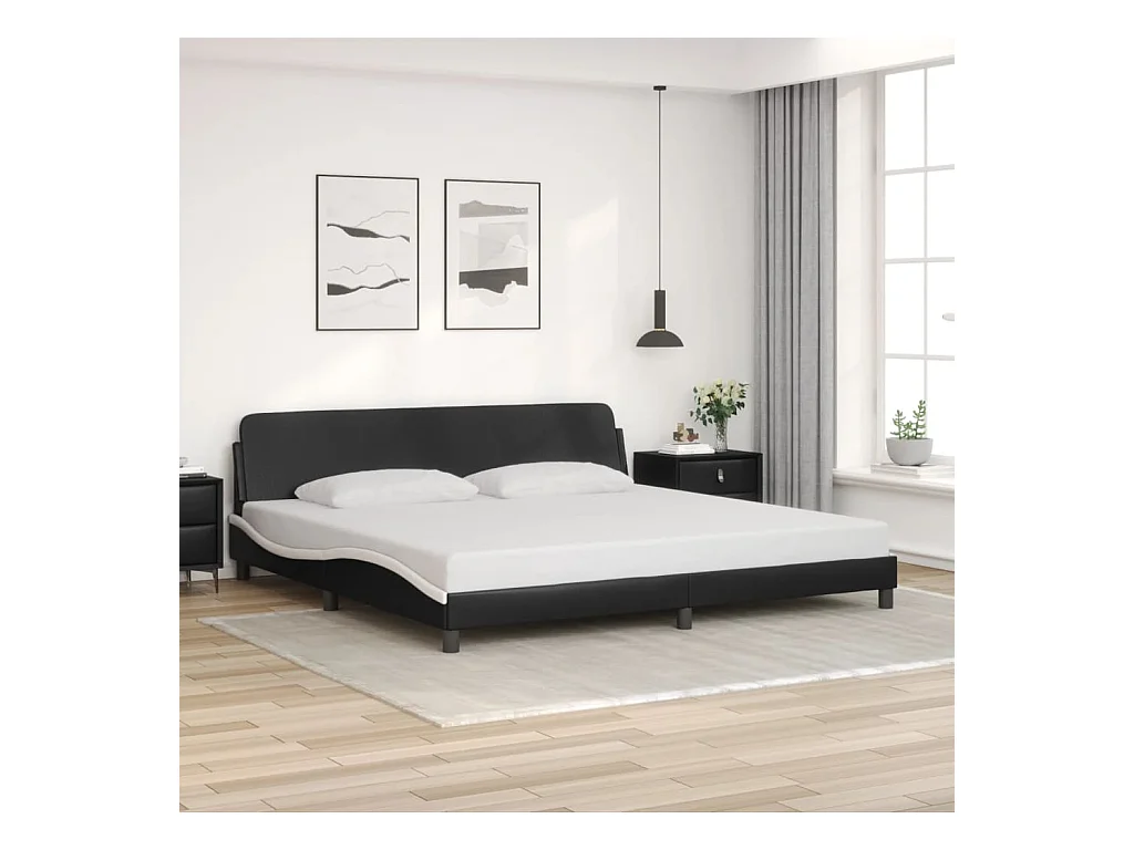 Lit double et tête de lit noir et blanc 200x200 cm similicuir FR93050