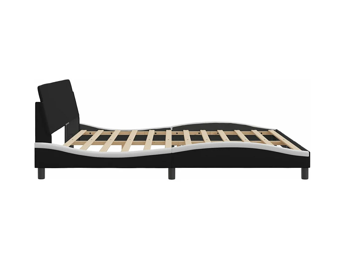 Lit double et tête de lit noir et blanc 200x200 cm similicuir FR90001