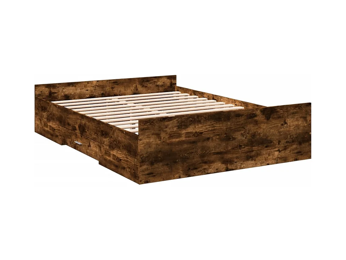 Lit double et tiroirs chêne fumé 120x190 cm bois d'ingénierie FR73062