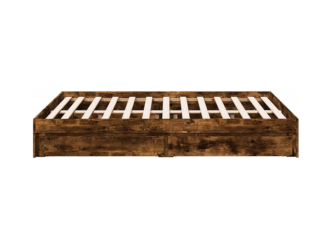 Lit double et tiroirs chêne fumé 120x200 cm bois d'ingénierie FR43146
