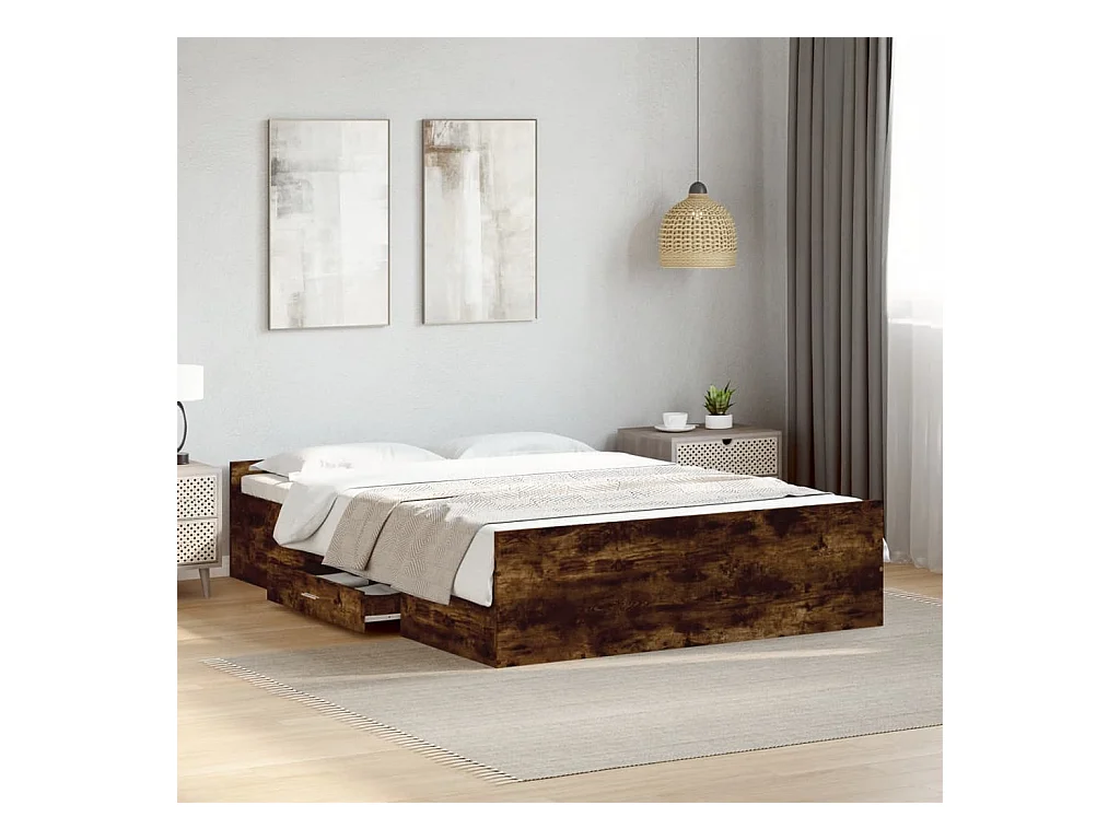 Lit double et tiroirs chêne fumé 140x190 cm bois d'ingénierie FR57167