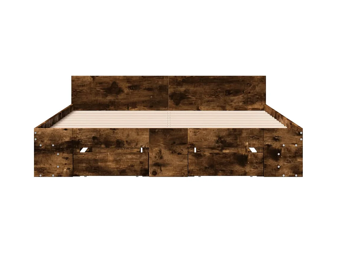 Lit double et tiroirs chêne fumé 140x190 cm bois d'ingénierie FR59859