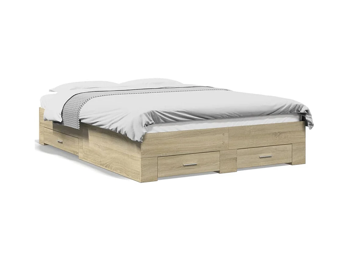 Lit double et tiroirs chêne sonoma 120x190 cm bois ingénierie FR81054