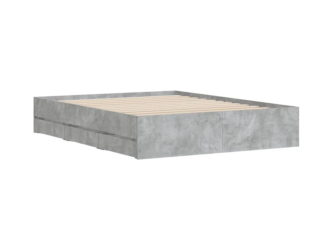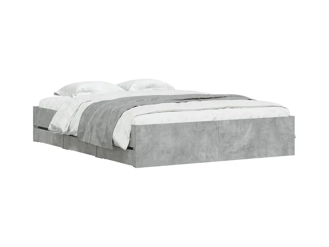 Lit double et tiroirs gris béton 140x200 cm bois d'ingénierie FR96492