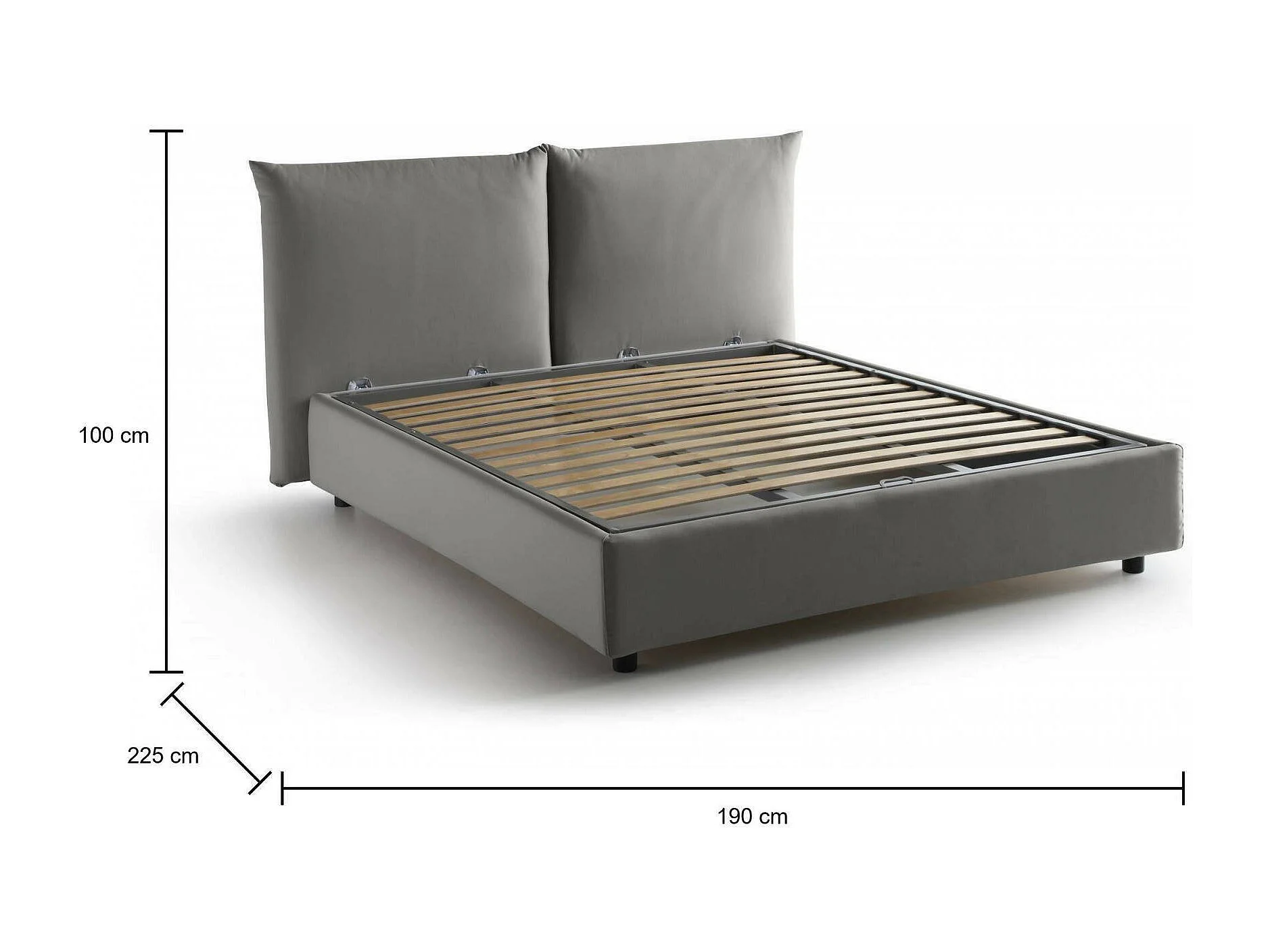 Lit double Gabriella, Lit coffre avec revêtement en tissu, 100% Made in Italy, Ouverture frontale, adapté pour matelas 160x200 cm, Gris
