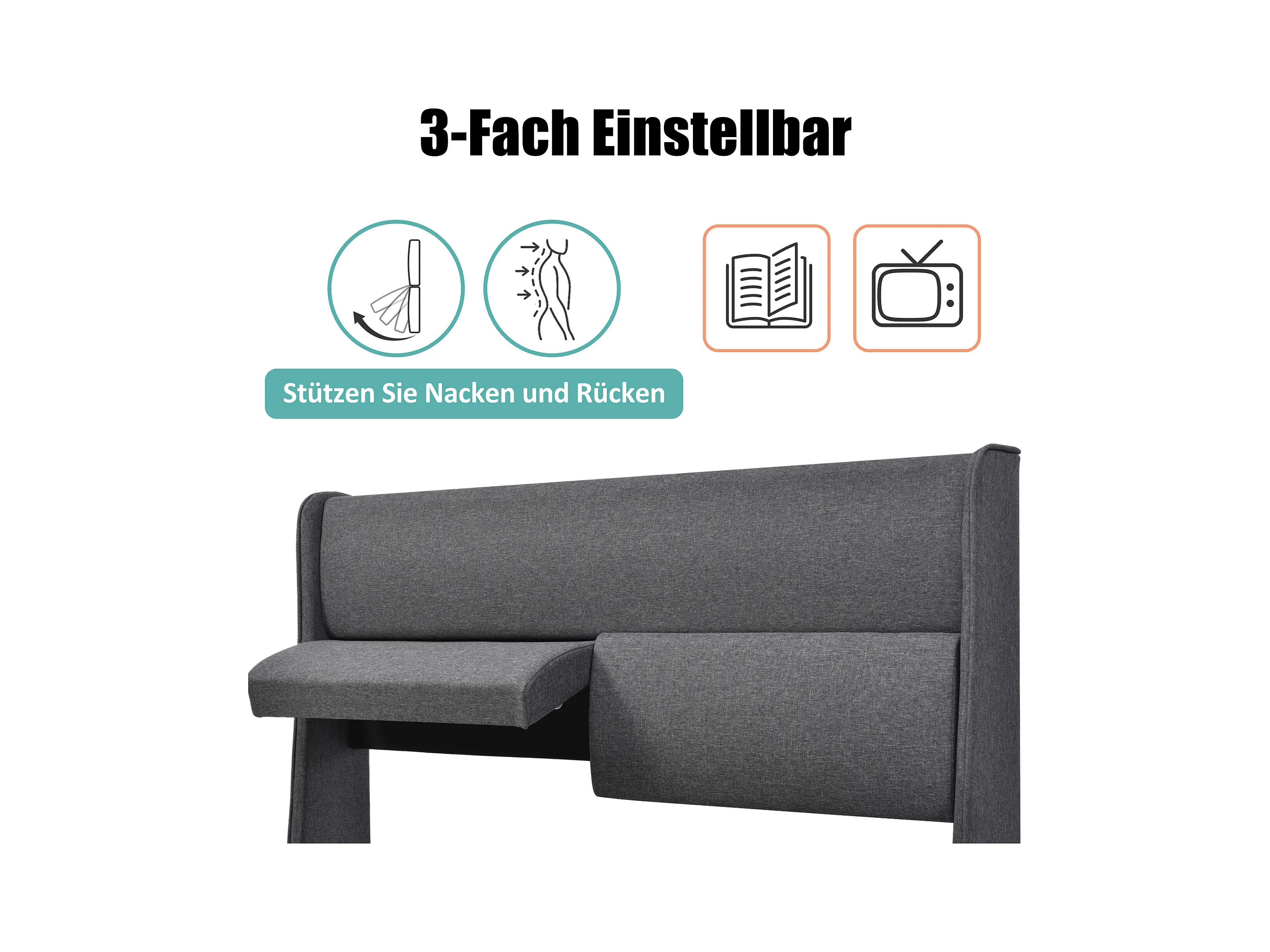 Lit double, Polsterbett hydraulique avec LED, Tête de lit ajustable et rangement, Gris (180x200 cm)