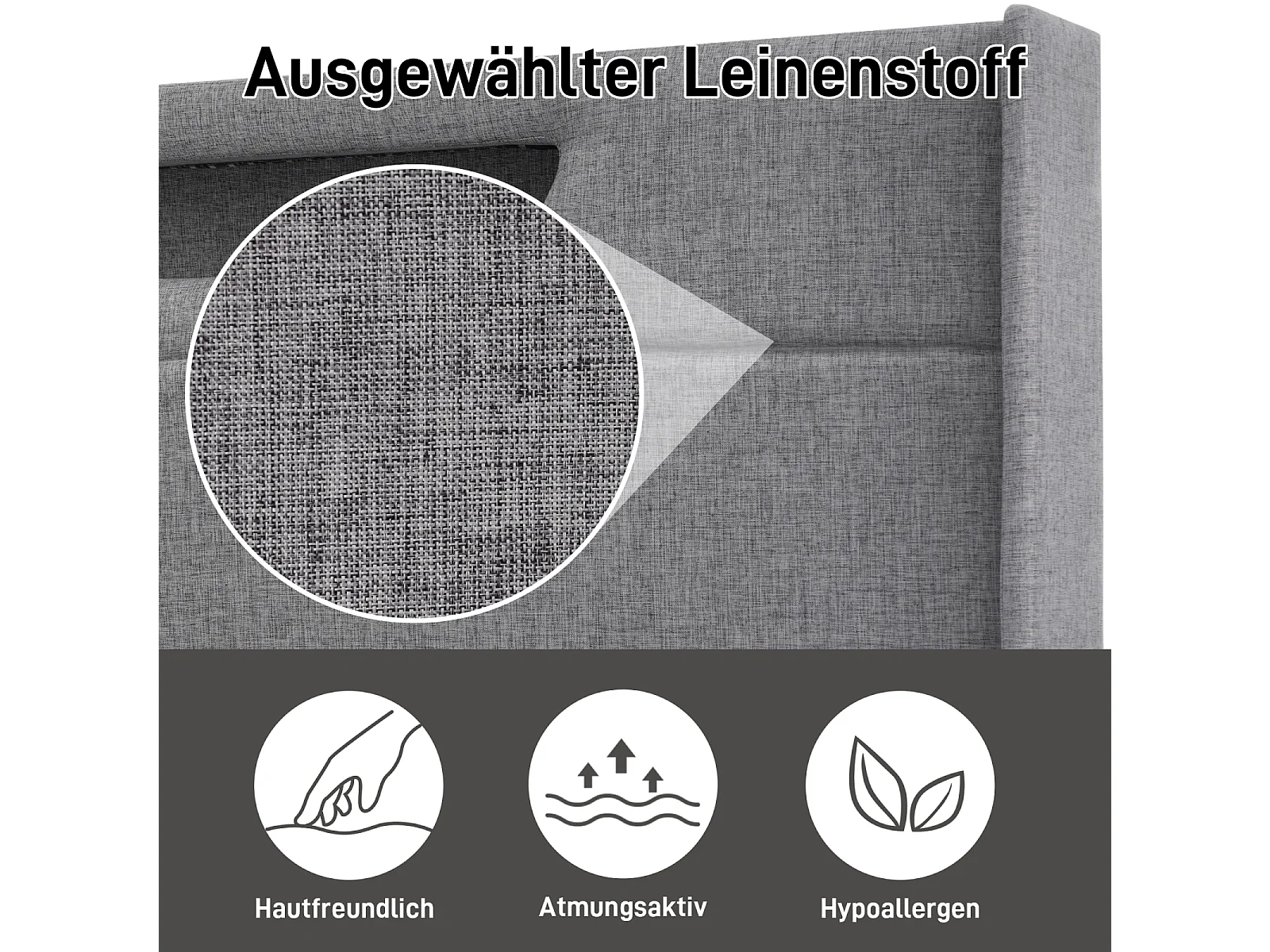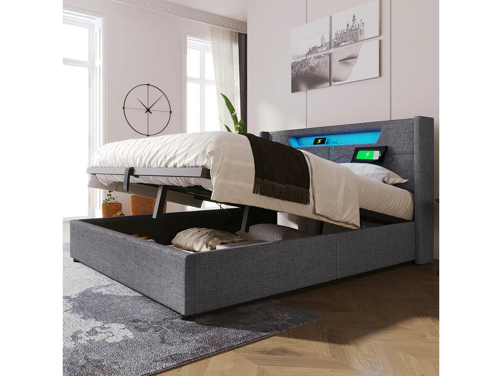 Lit Double LED 160x200 CM, Cadre de litavec Fonction de Recharge USB de Type C et LED, Lin, Grey