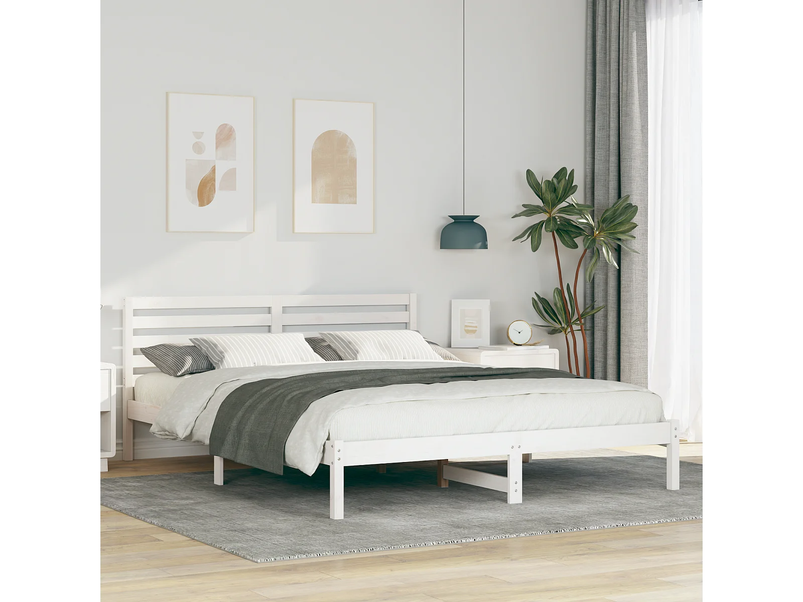 Lit double | Lit adulte | Cadre de lit Blanc 160x220 cm Bois massif en pin