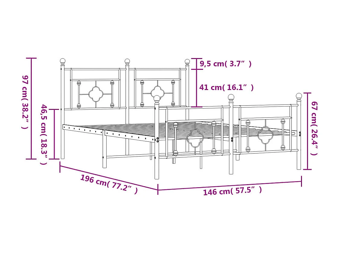 Lit double | Lit adulte | Cadre de lit métal et pied de lit blanc 140x190 cm