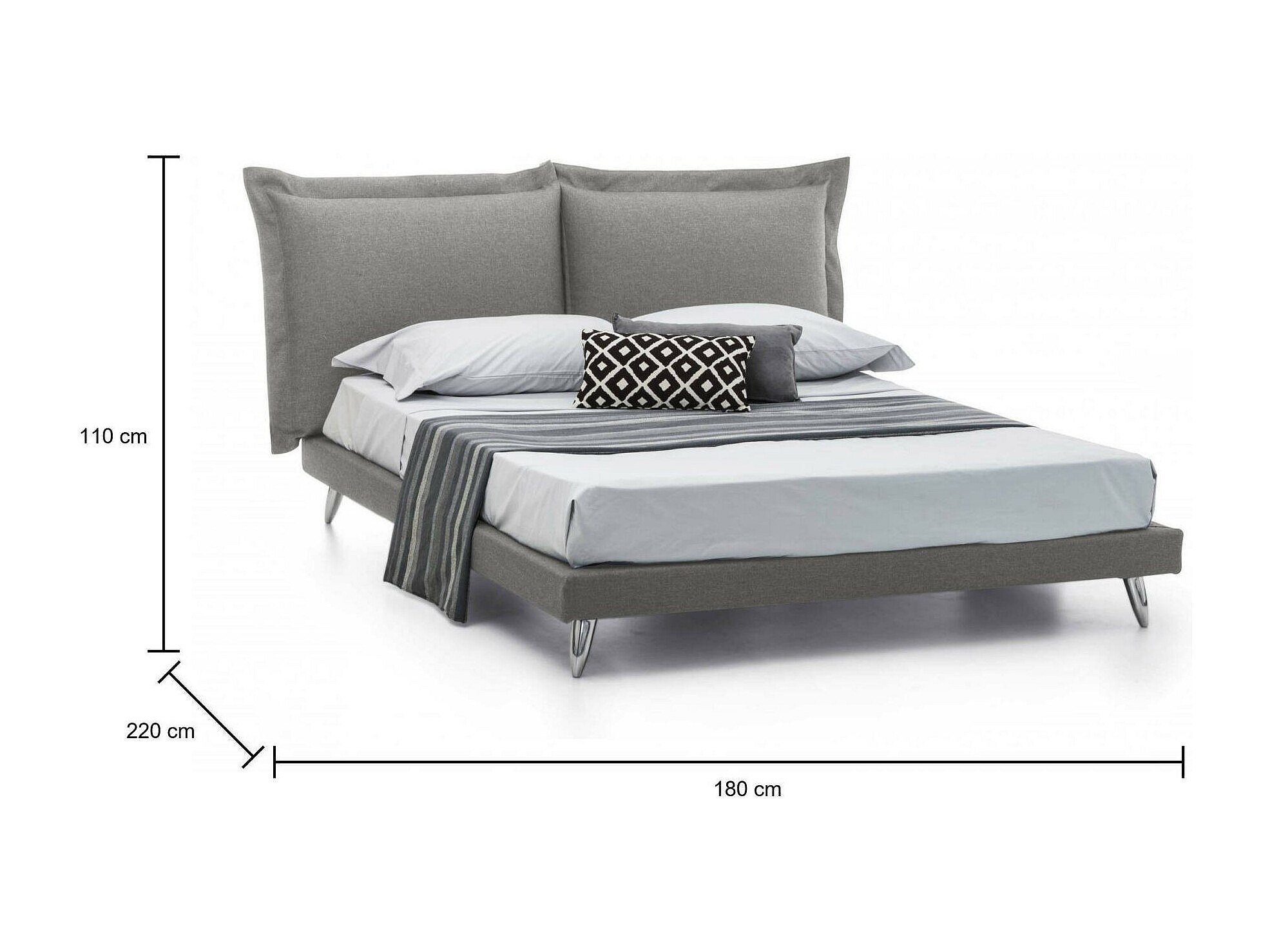 LIT DOUBLE - Lit fixe en tissu avec pieds, 100% Made in Italy, adapté pour matelas 160x190 cm, Gris.