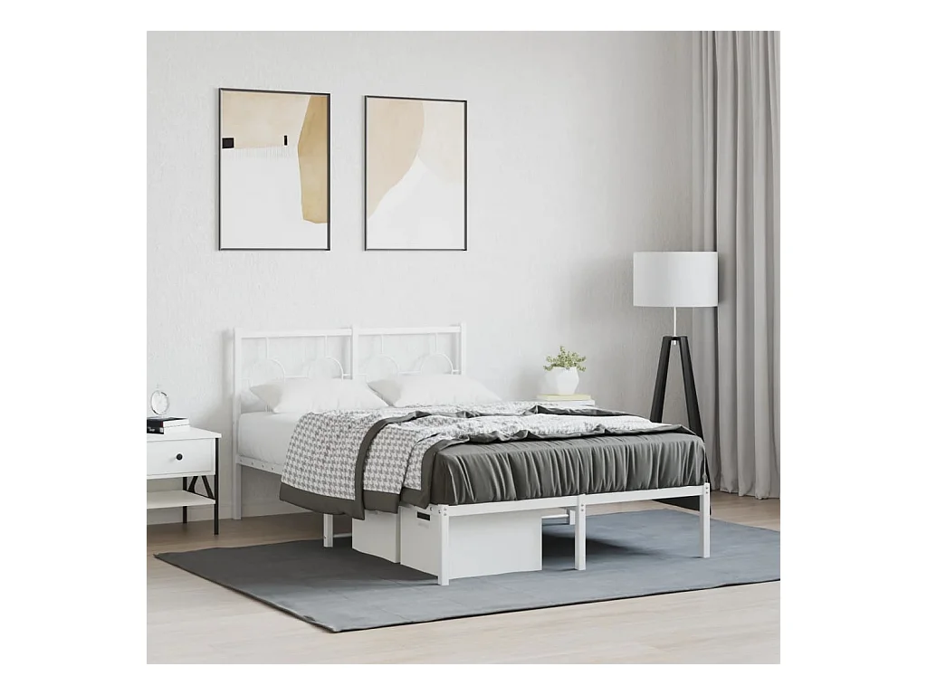 Lit double métal + tête de lit blanc 120x190 cm FR92268