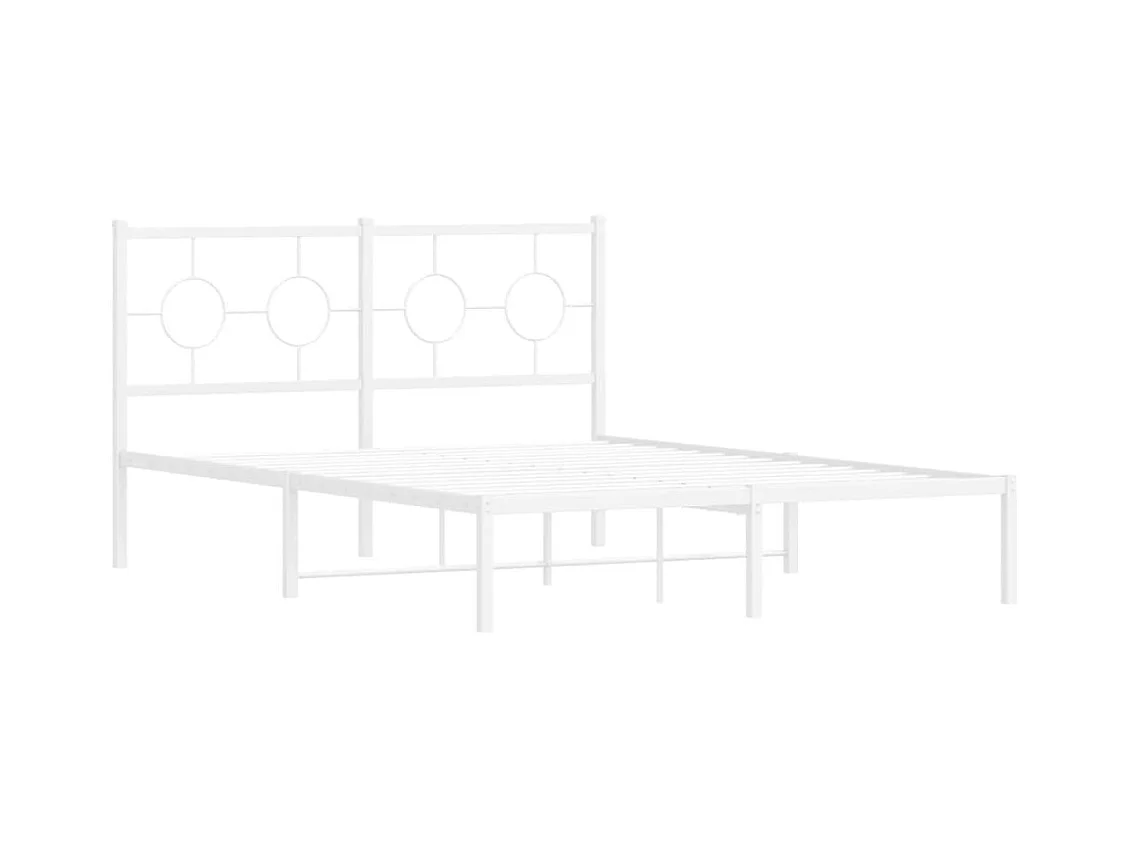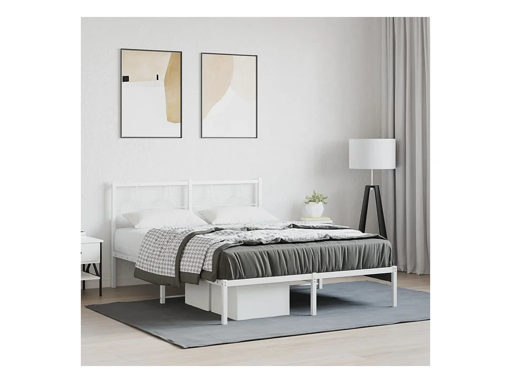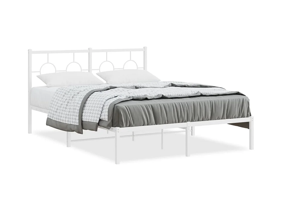 Lit double métal + tête de lit blanc 140x190 cm FR15059