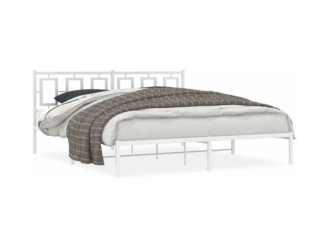 Lit double métal + tête de lit/pied de lit blanc 183x203cm FR49339