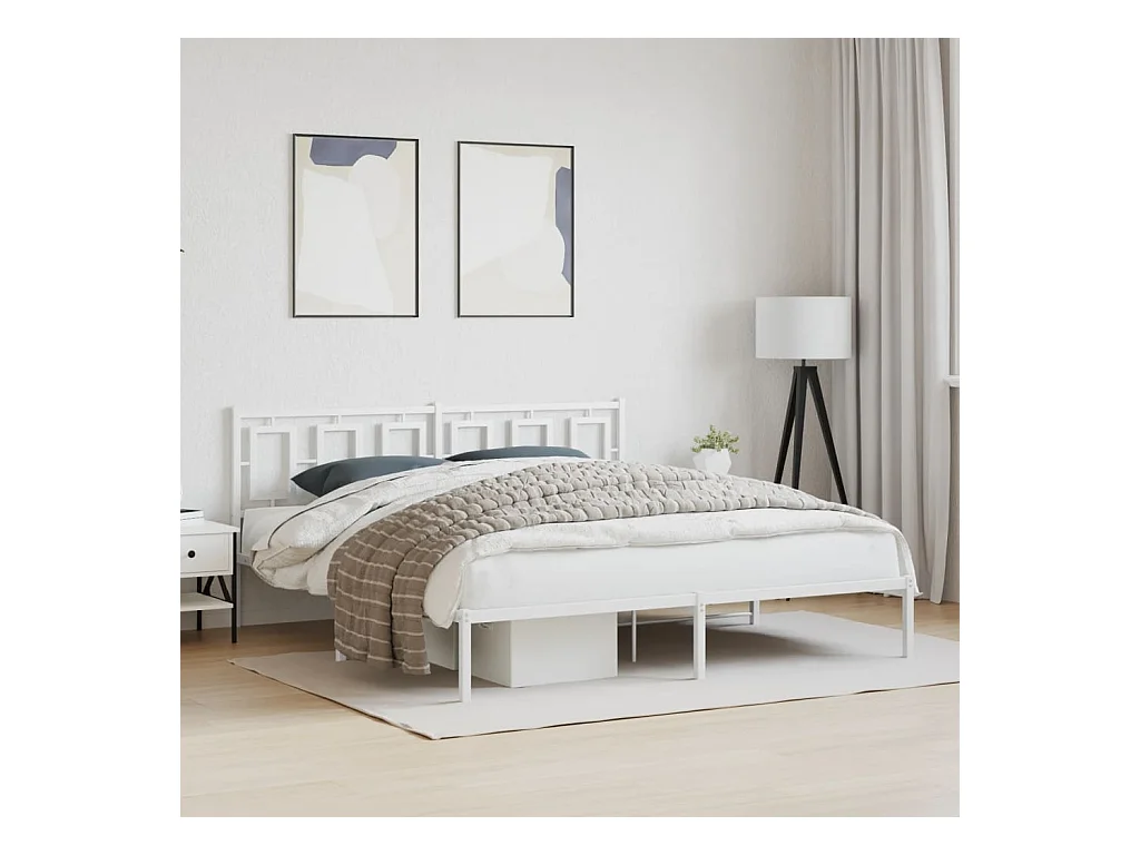 Lit double métal + tête de lit blanc 183x213 cm FR31454