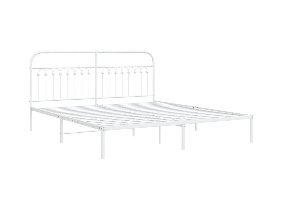 Lit double métal + tête de lit blanc 183x213 cm FR30778
