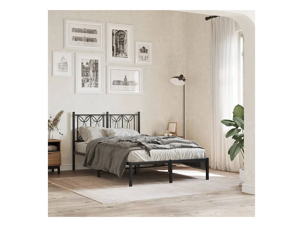 Lit double métal + tête de lit noir 120x200 cm FR26020