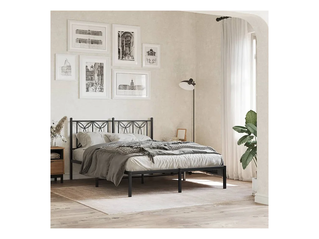 Lit double métal + tête de lit noir 140x190 cm FR68757