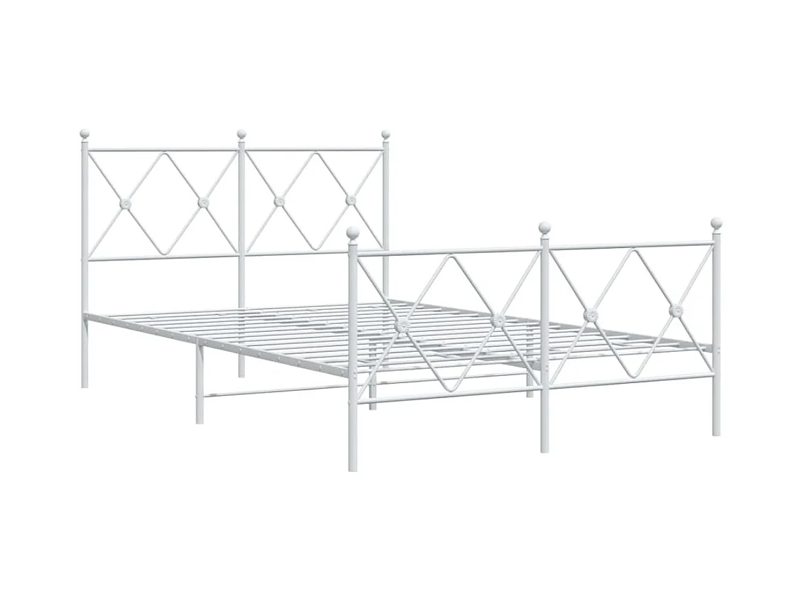 Lit double métal + tête de lit/pied de lit blanc 120x200cm FR53739
