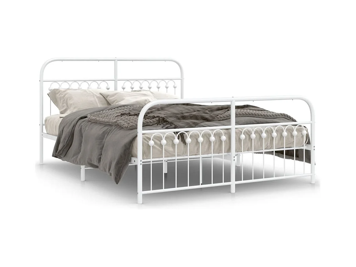 Lit double métal + tête de lit/pied de lit blanc 150x200cm FR53637