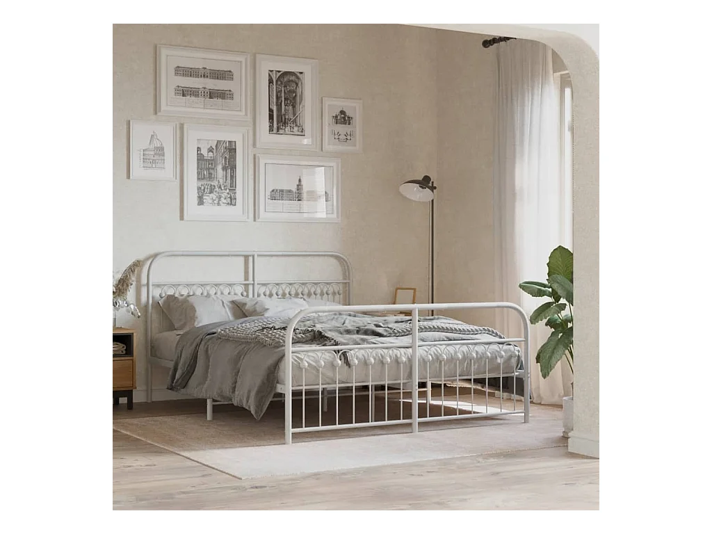 Lit double métal + tête de lit/pied de lit blanc 150x200cm FR43974