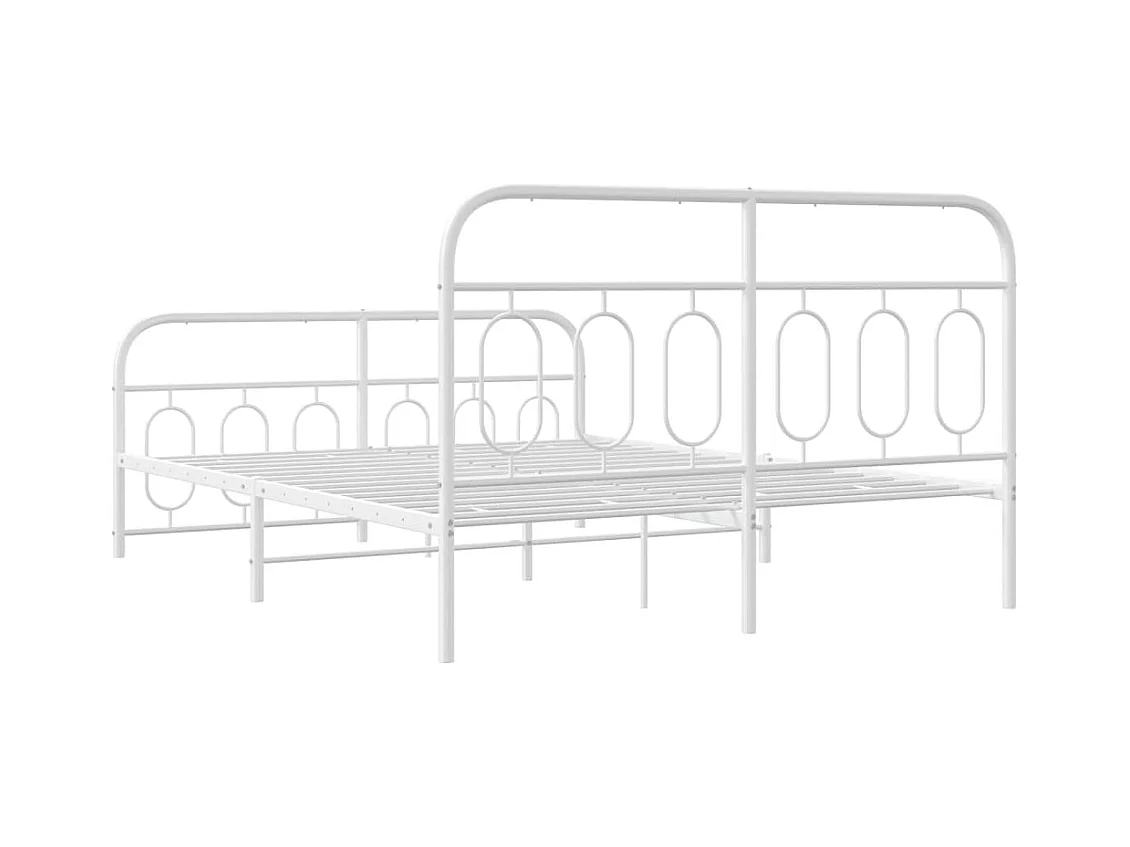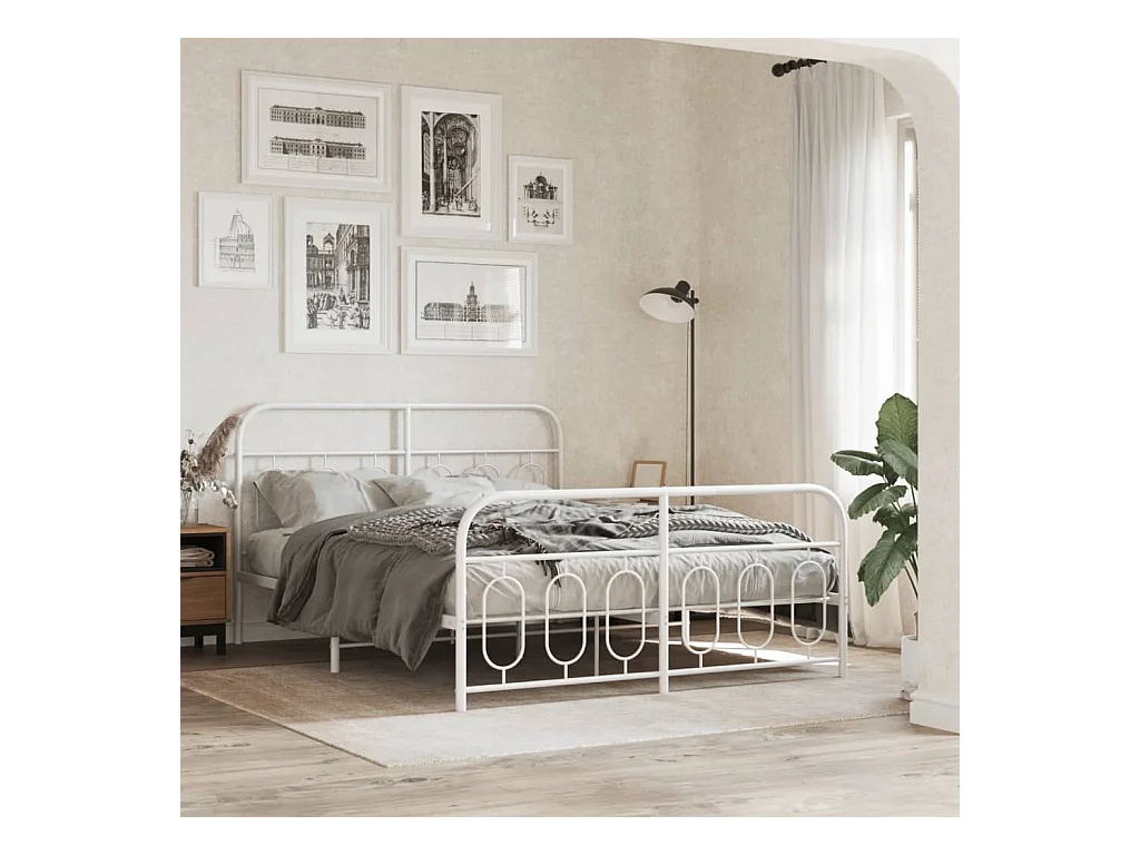 Lit double métal + tête de lit/pied de lit blanc 150x200cm FR53637