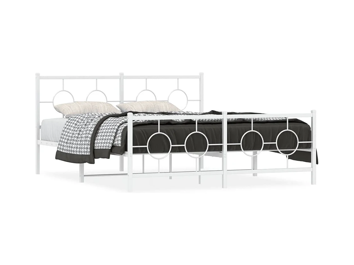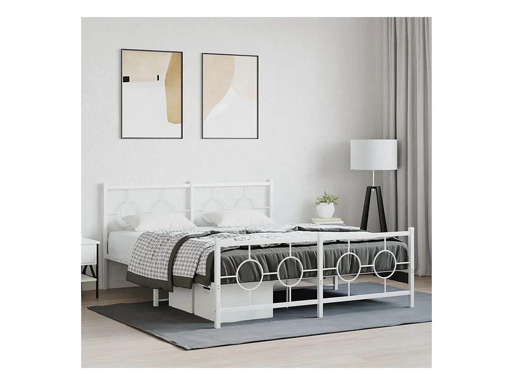 Lit double métal + tête de lit/pied de lit blanc 150x200cm FR43974