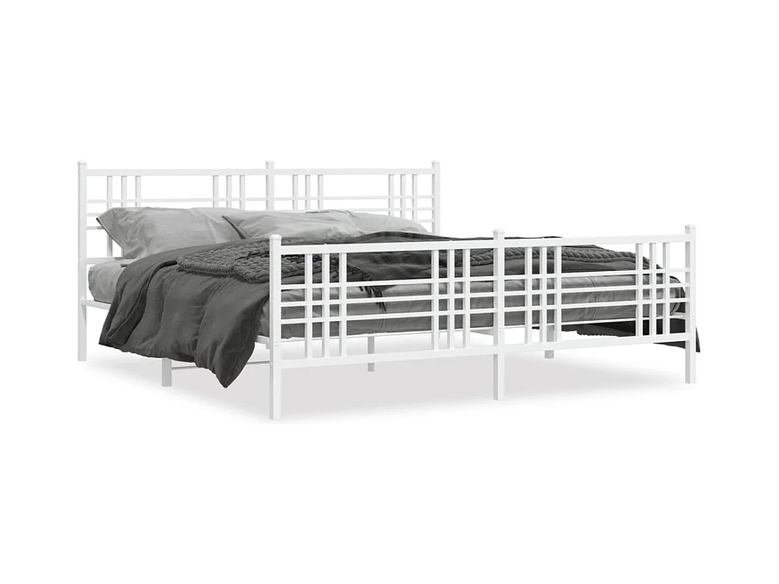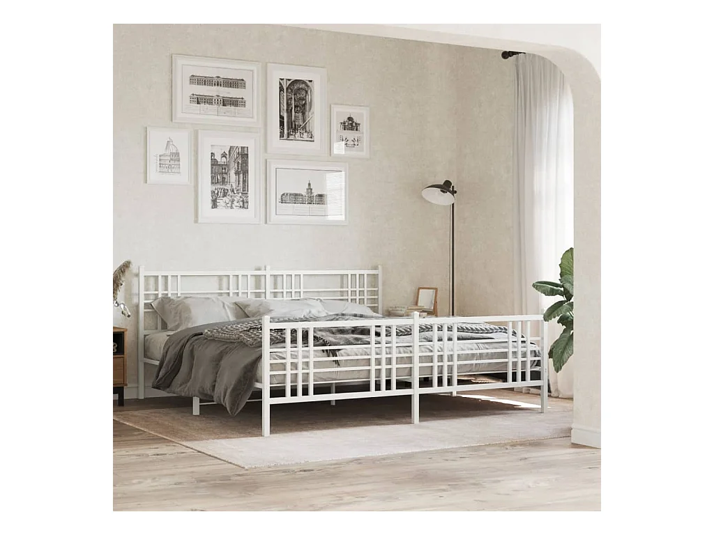 Lit double métal + tête de lit/pied de lit blanc 193x203cm FR87608