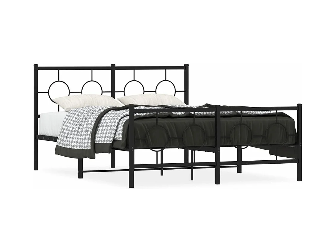 Lit double métal + tête de lit/pied de lit noir 140x190 cm FR85519