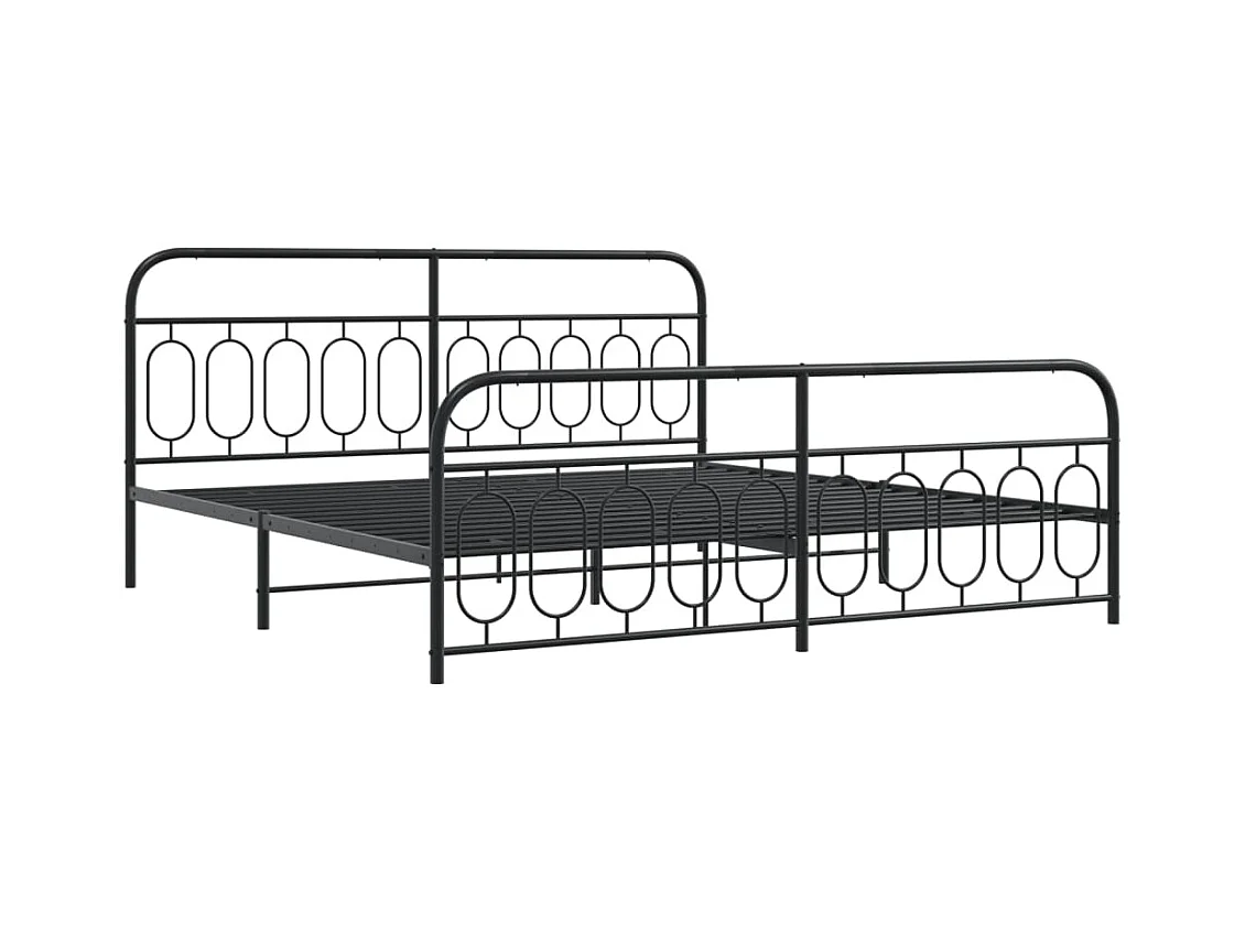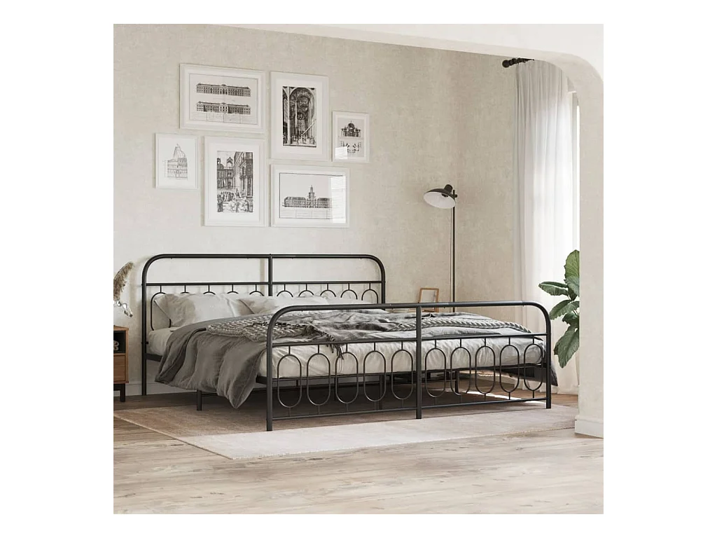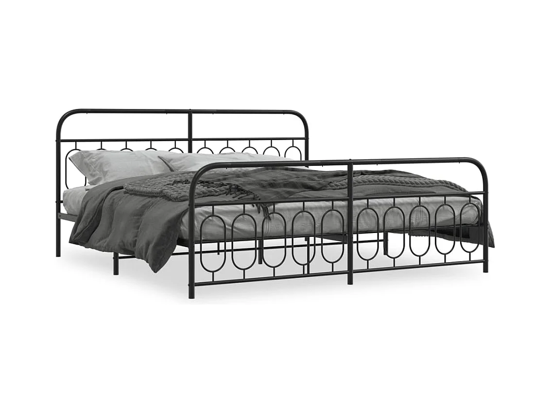 Lit double métal + tête de lit/pied de lit noir 200x200 cm FR56211