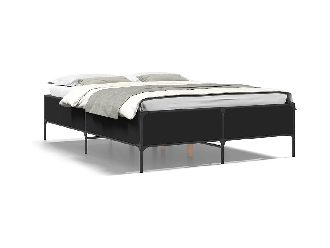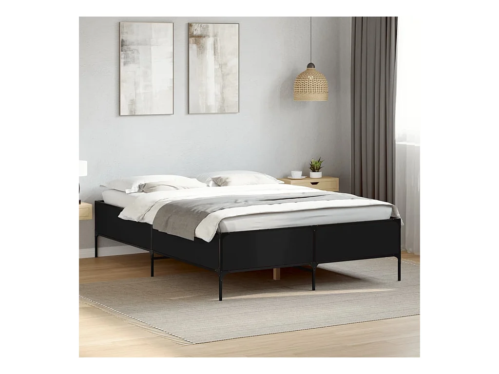 Lit double noir 120x190 cm bois d'ingénierie et métal FR47201