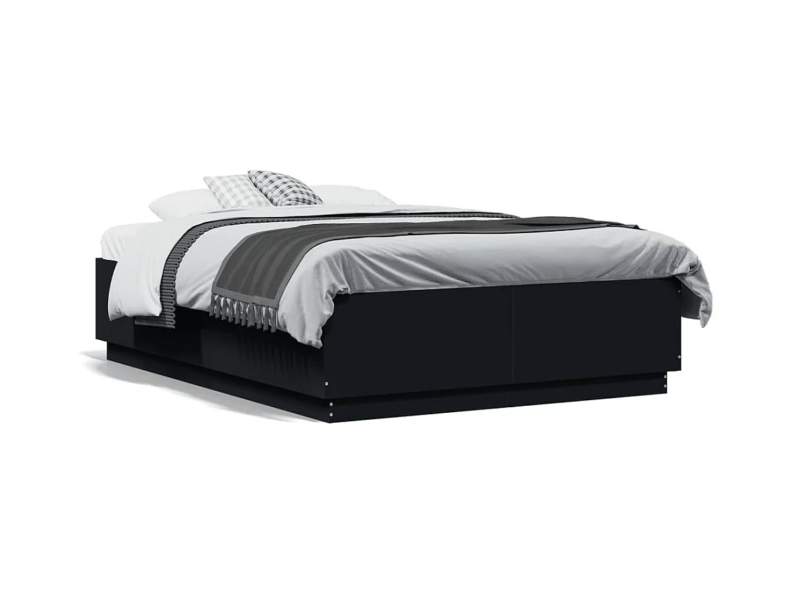 Lit double noir 120x190 cm bois d'ingénierie FR34684