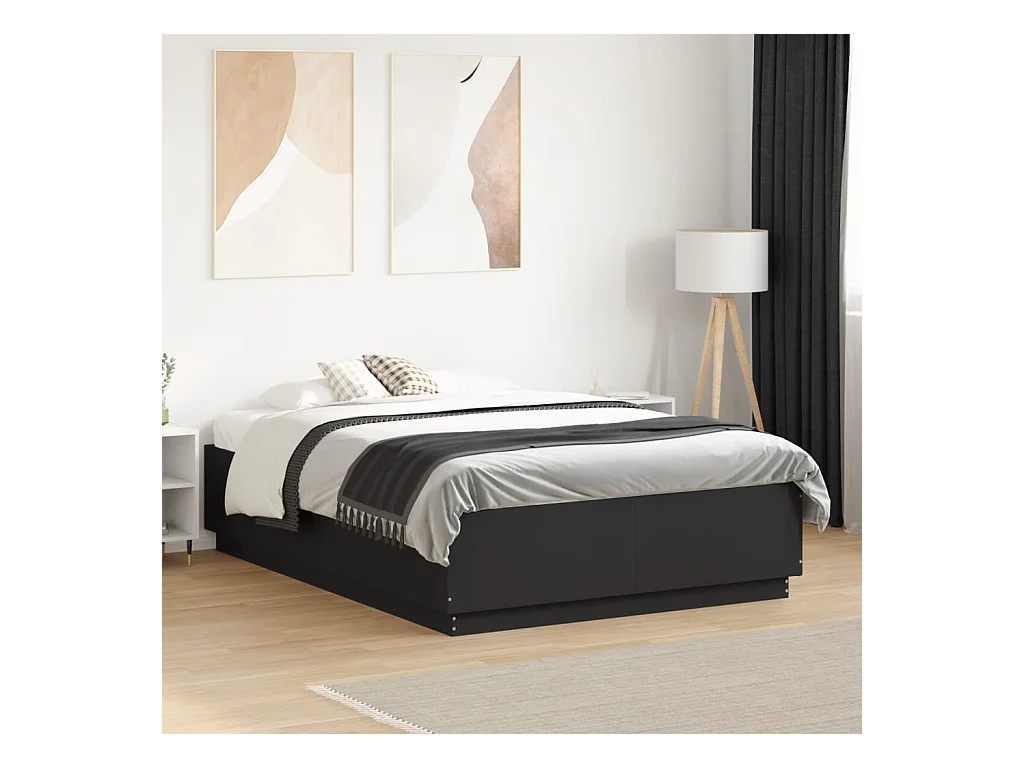 Lit double noir 120x190 cm bois d'ingénierie FR75417