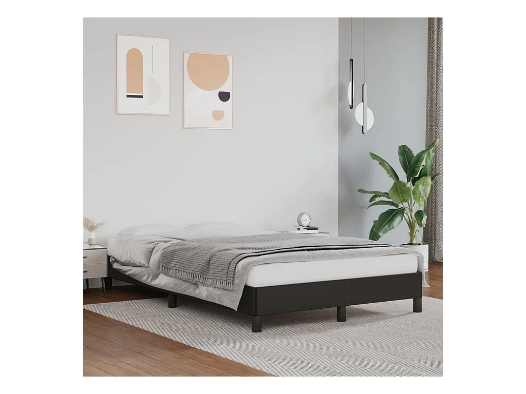 Lit double + tête de lit noir 120x190 cm similicuir FR34668
