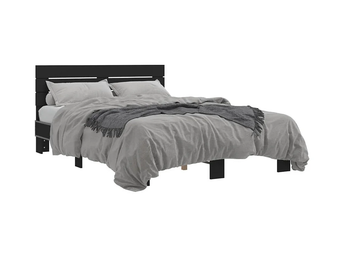 Lit double noir 120x200 cm bois d'ingénierie et métal FR56249