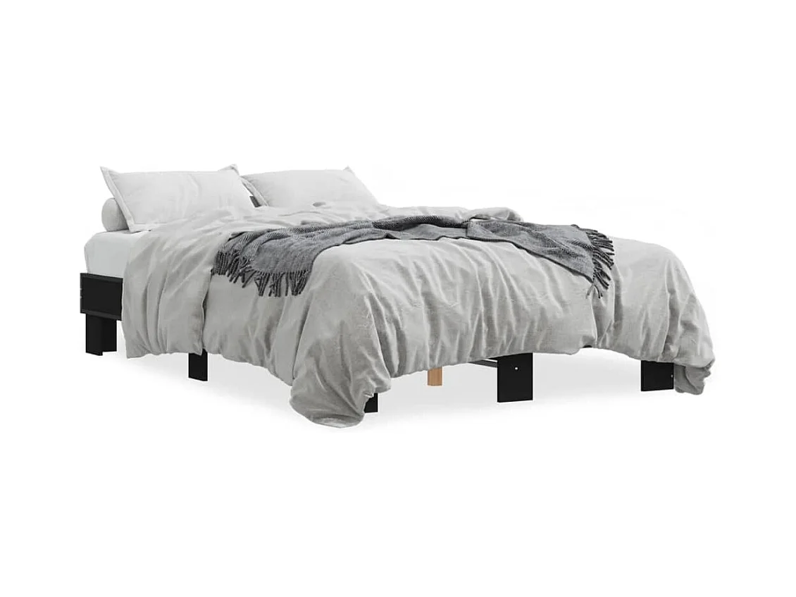 Lit double noir 140x200 cm bois d'ingénierie et métal FR64496
