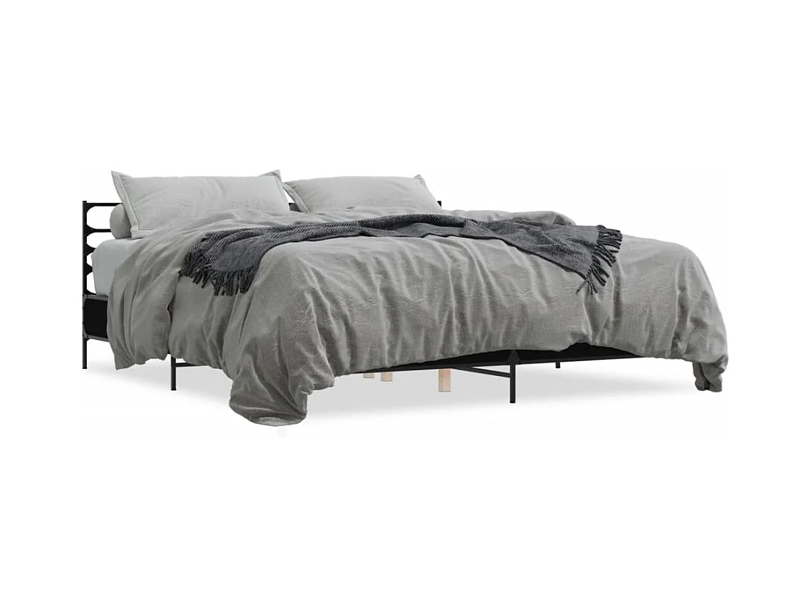 Lit double noir 200x200 cm bois d'ingénierie et métal FR64360