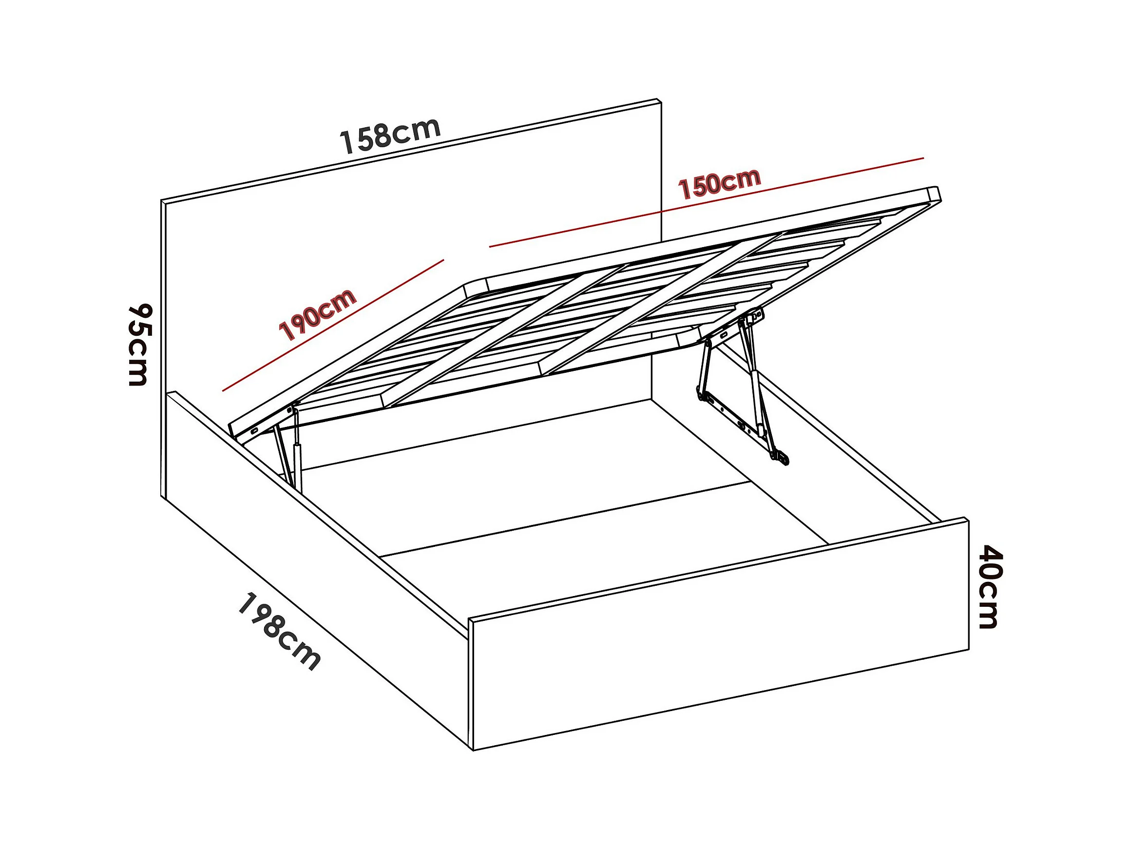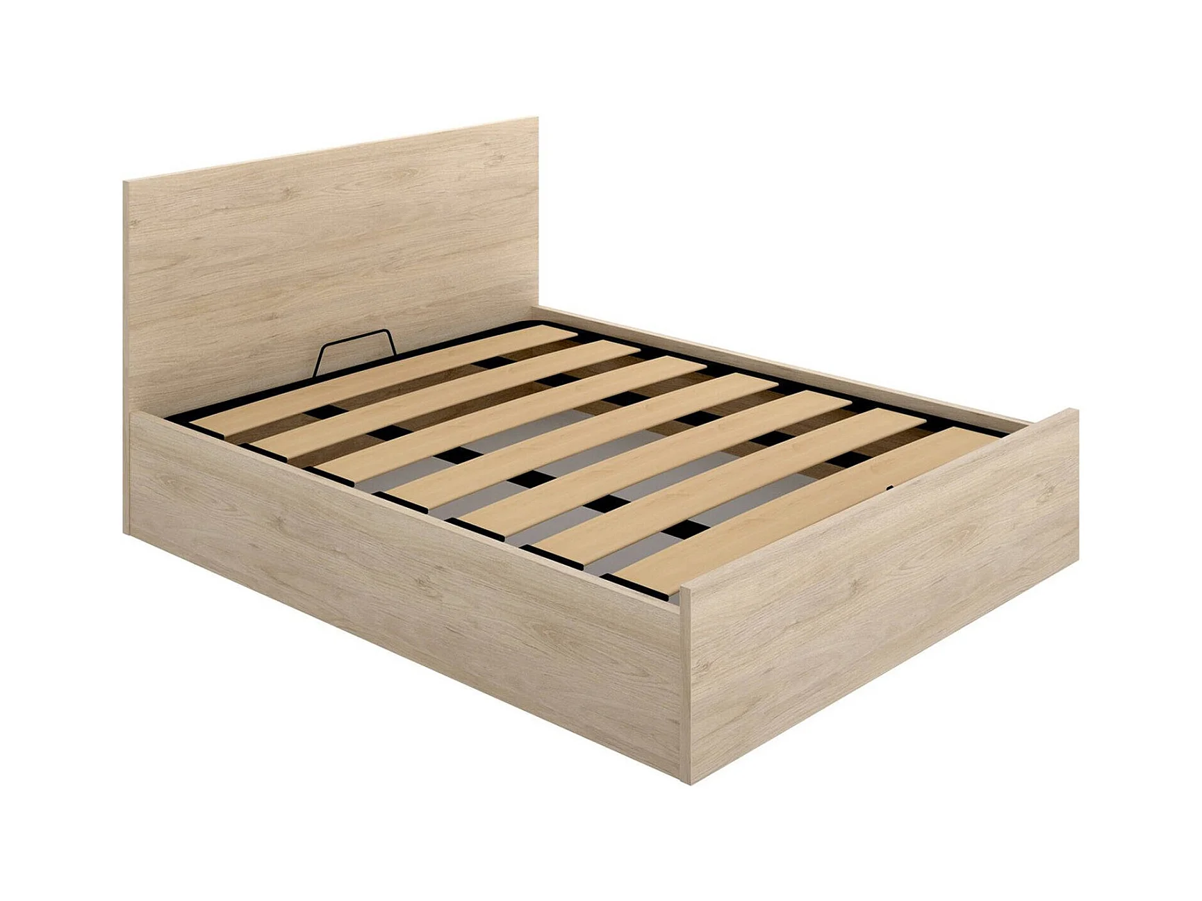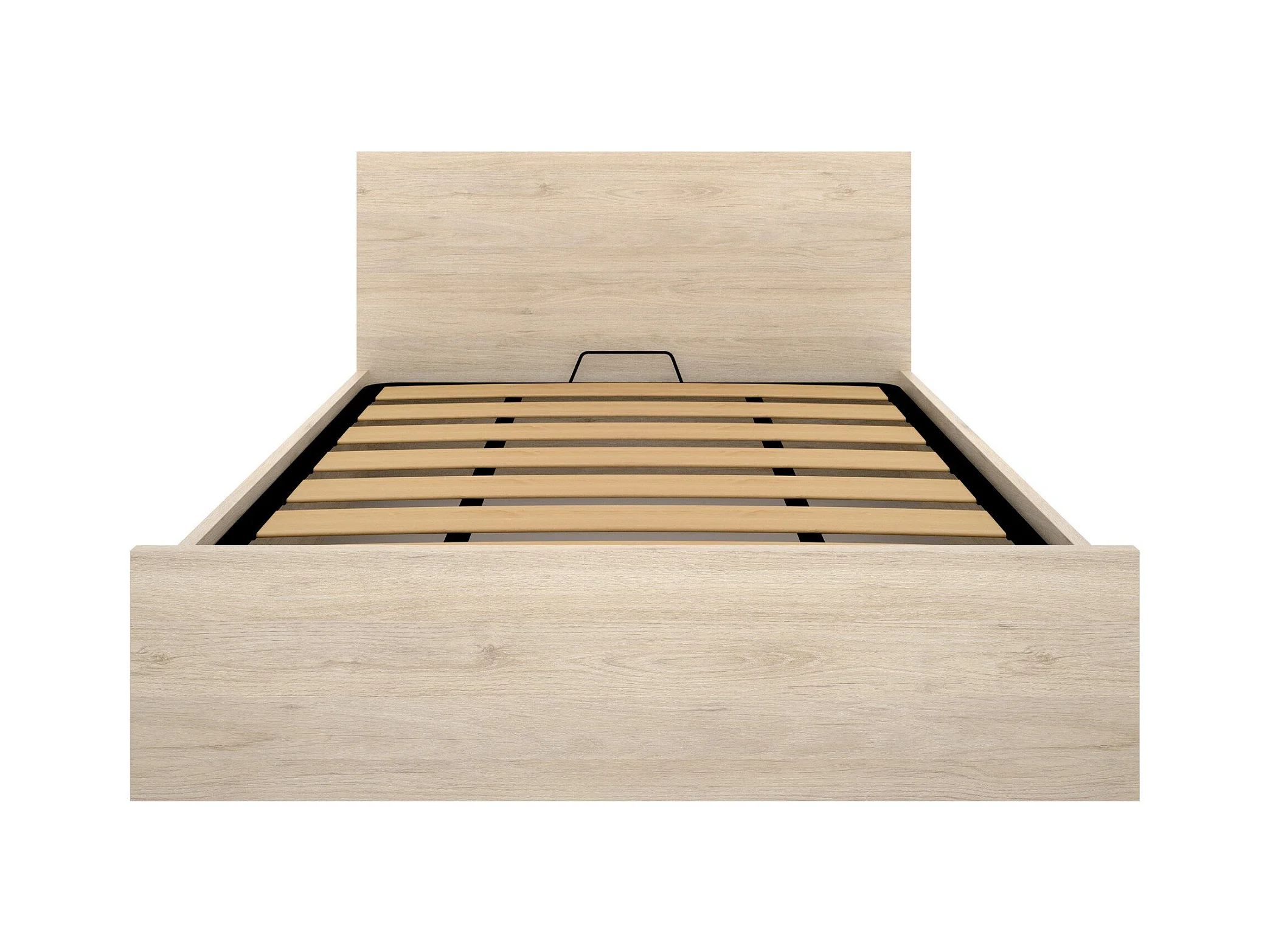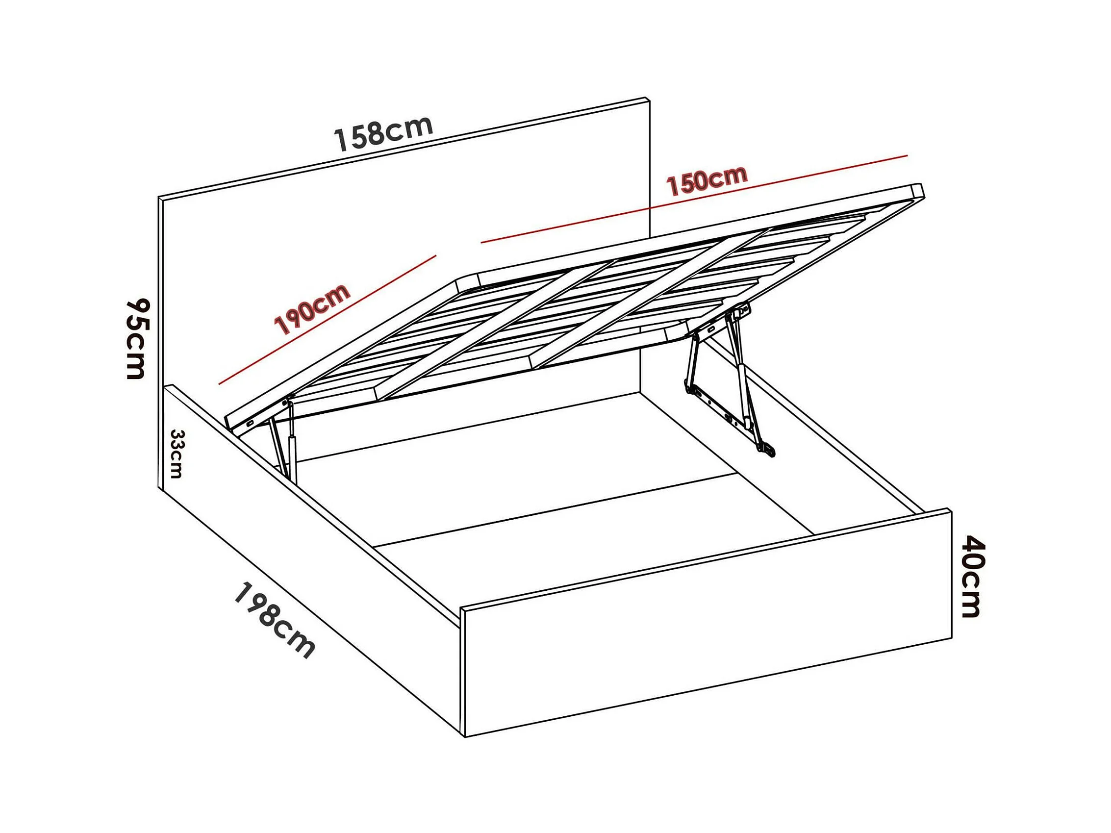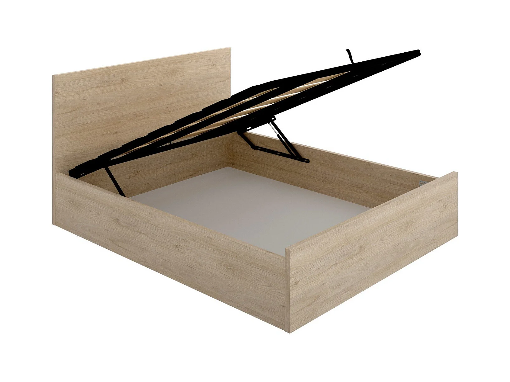 Lit double Dluli, Cadre de lit Sommier inclus, Structure lit coffre pour matelas 150x190 cm, 197x158h95 cm, Chêne