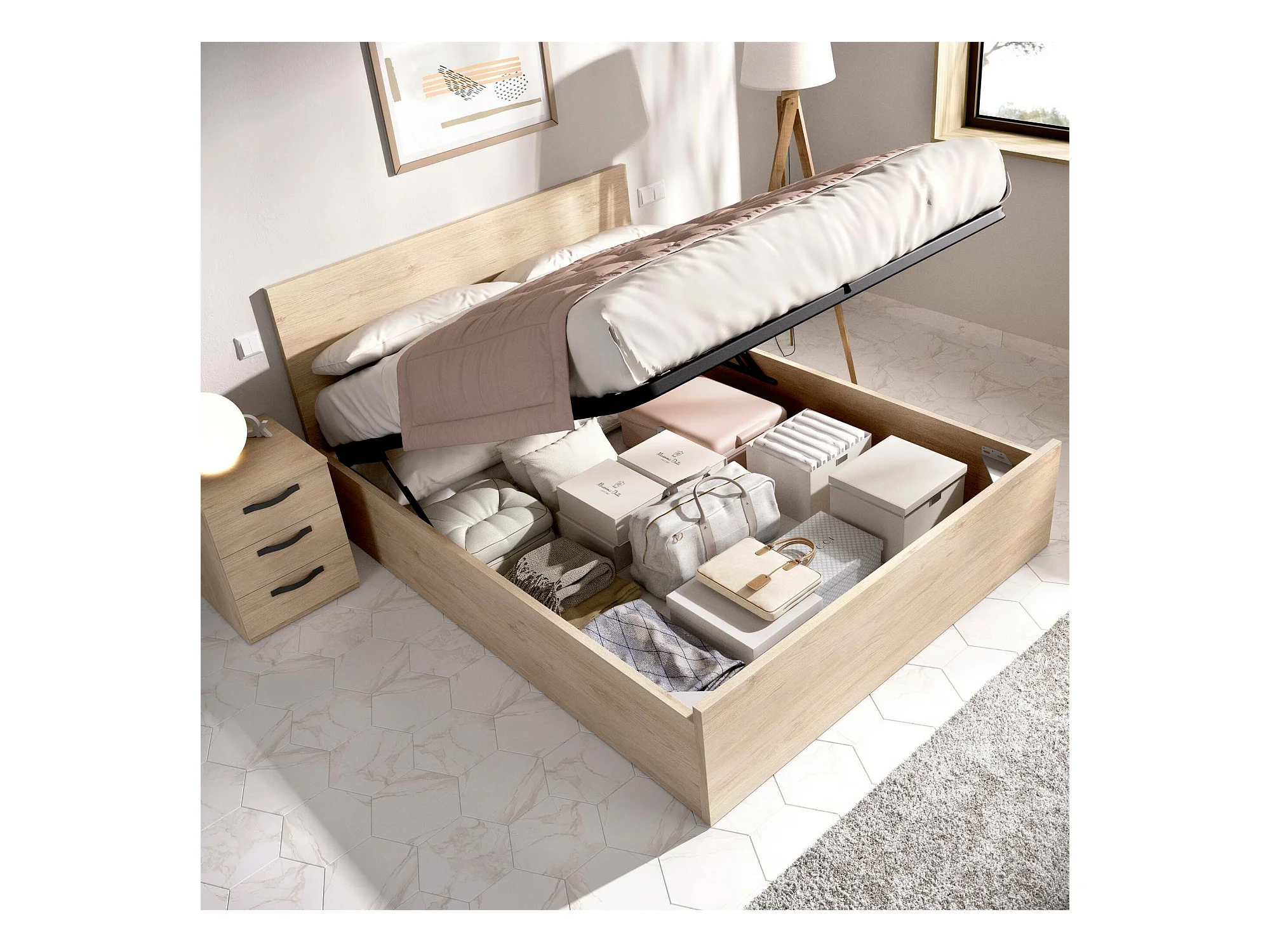 Lit double Piglione, Cadre de lit Sommier inclus, Structure lit coffre pour matelas 150x190 cm, 197x158h95 cm, Chêne