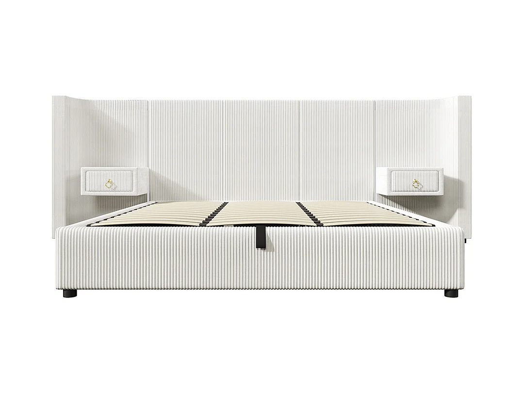 Lit rembourré avec rangement 248 x 224 - en Chenille - beige - MAKANA