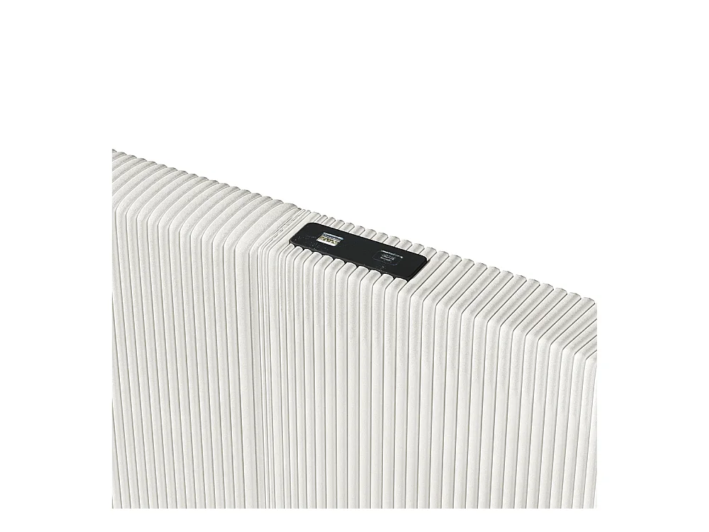 Lit double capitonné 180 x 200 avec liseuse et recharge USB Type-C, en bois massif et métal, beige, tissu velours côtelé