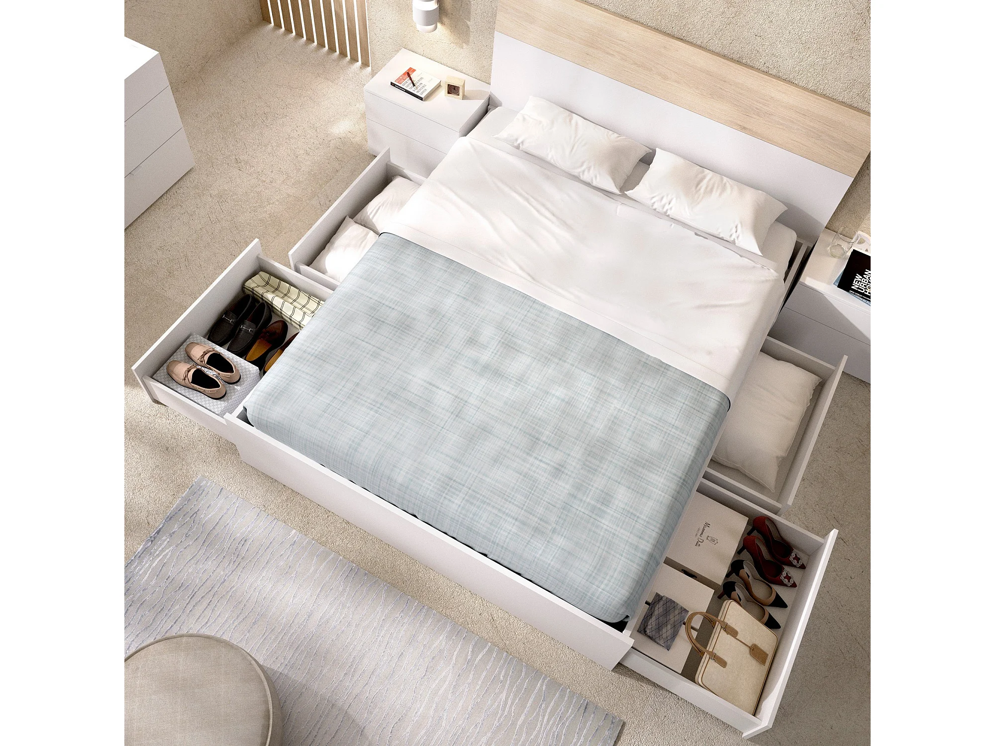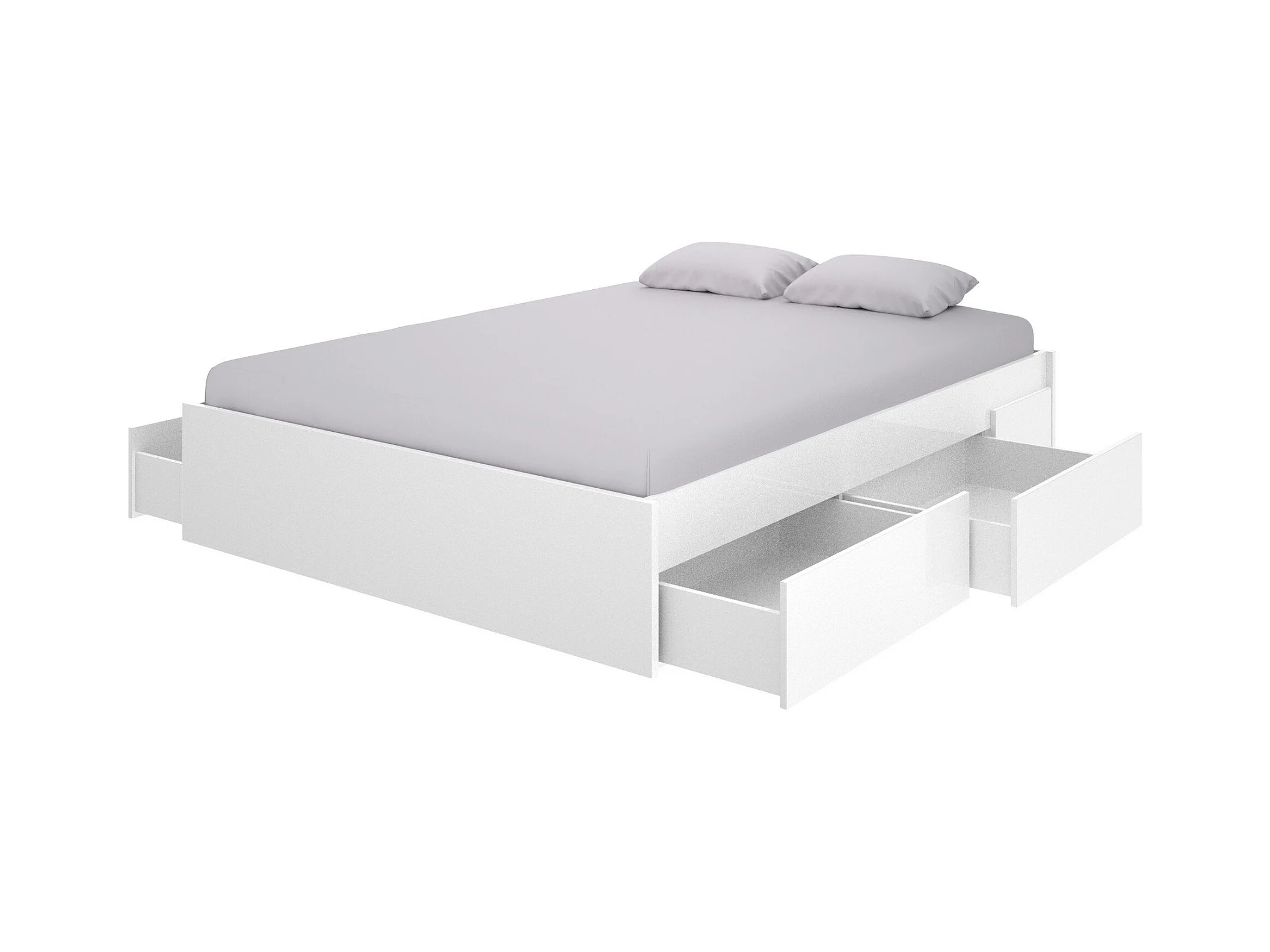 Lit double Dmaresc, Cadre de lit Sommier, Cadre de lit rangement avec 4 tiroirs, 197x160h37 cm, Blanc