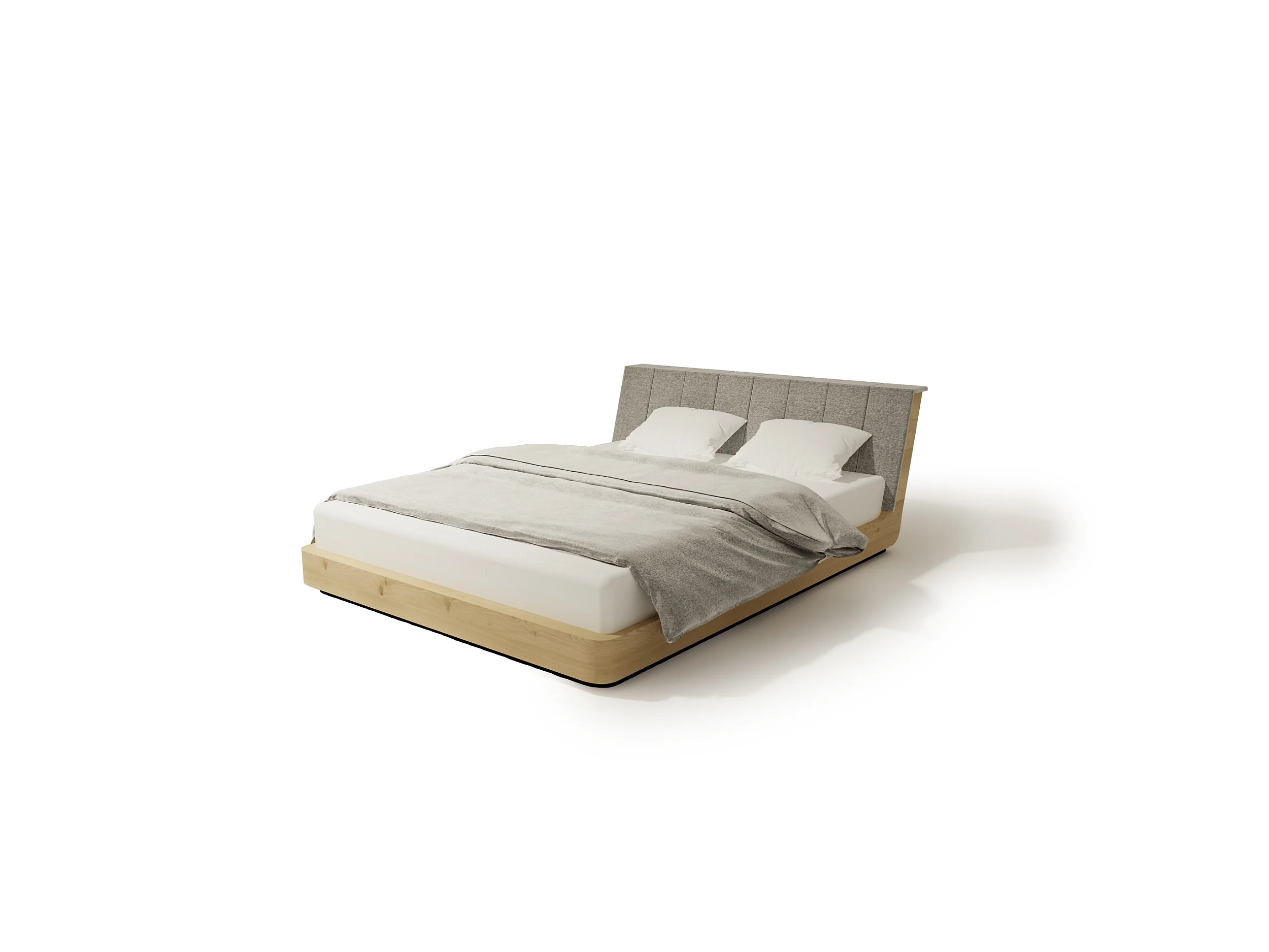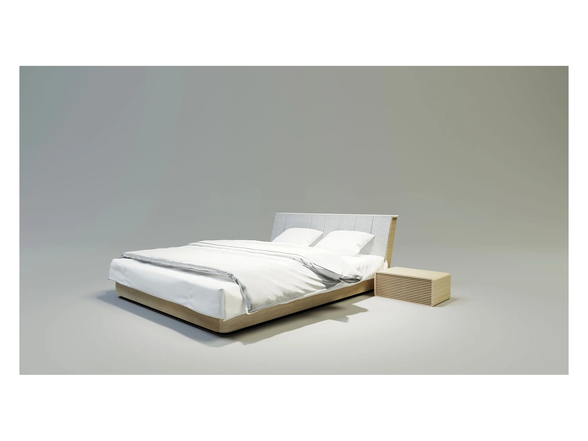 Lit Double SONAR lévitant 120x200 cm Capitonné - bois de chêne massif