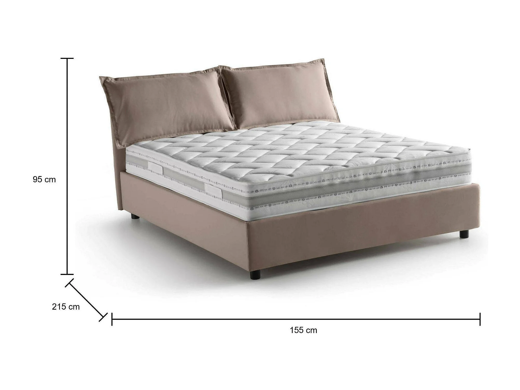 Lit double Teresa, Lit coffre avec revêtement en tissu, 100% Made in Italy, Ouverture frontale, avec matelas 140x200 cm inclus, Taupe