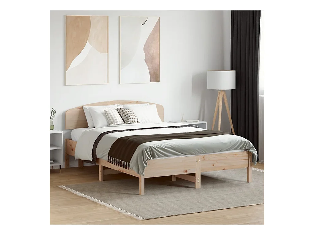 Lit double + tête de lit 120x190 cm bois de pin massif FR18690