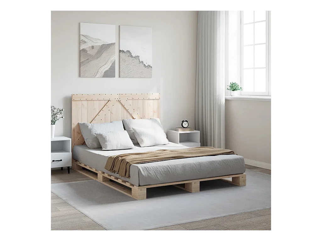 Lit double + tête de lit 140x200 cm bois de pin massif FR87572