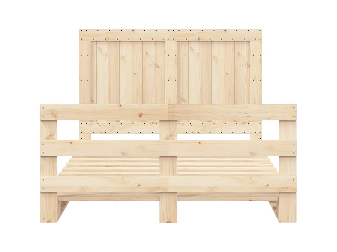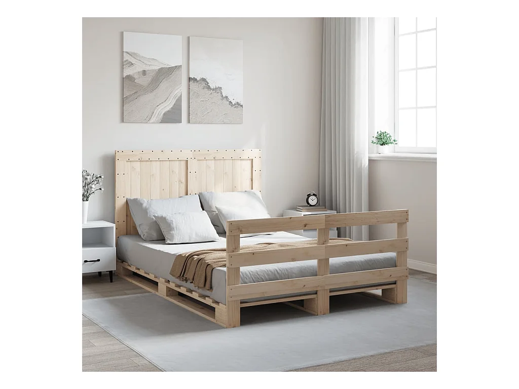 Lit double + tête de lit 140x200 cm bois de pin massif FR34122